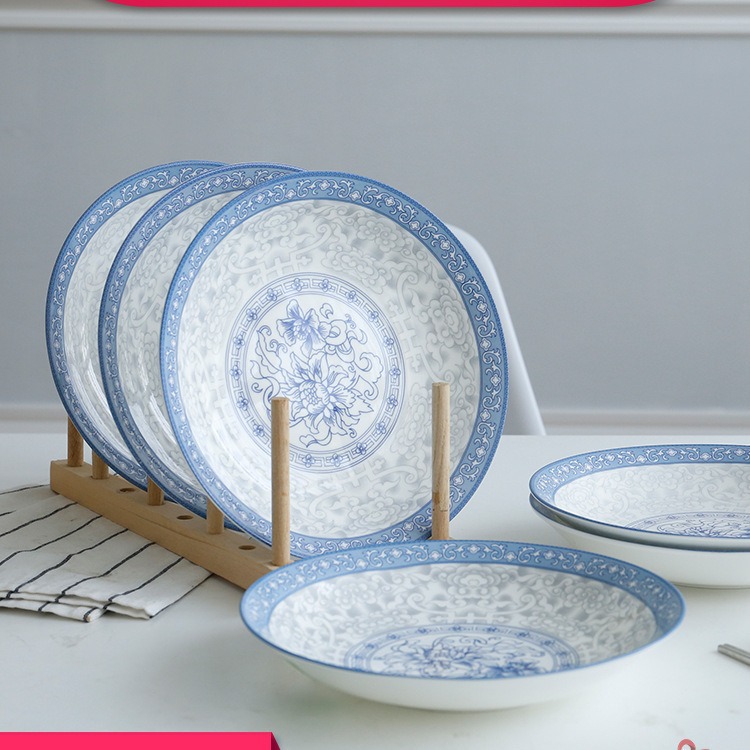 卸売り民生陶磁器富貴園皿中国式食器青花磁器家庭料理皿深皿円盤マイクロ波
