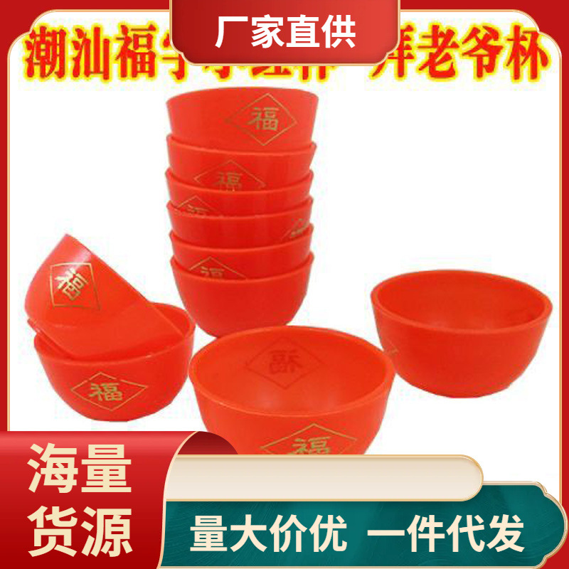 潮汕拝神プラスチックの赤い神台の前の福の字を卸売りして赤いコップの赤いプラスチックの小さい杯のお茶を厚くします。
