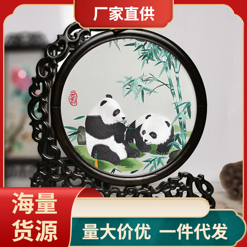 卸売り蜀刺繍手刺繍パンダ両面刺繍技術は風の特色を飾って古い成都記念品を贈る