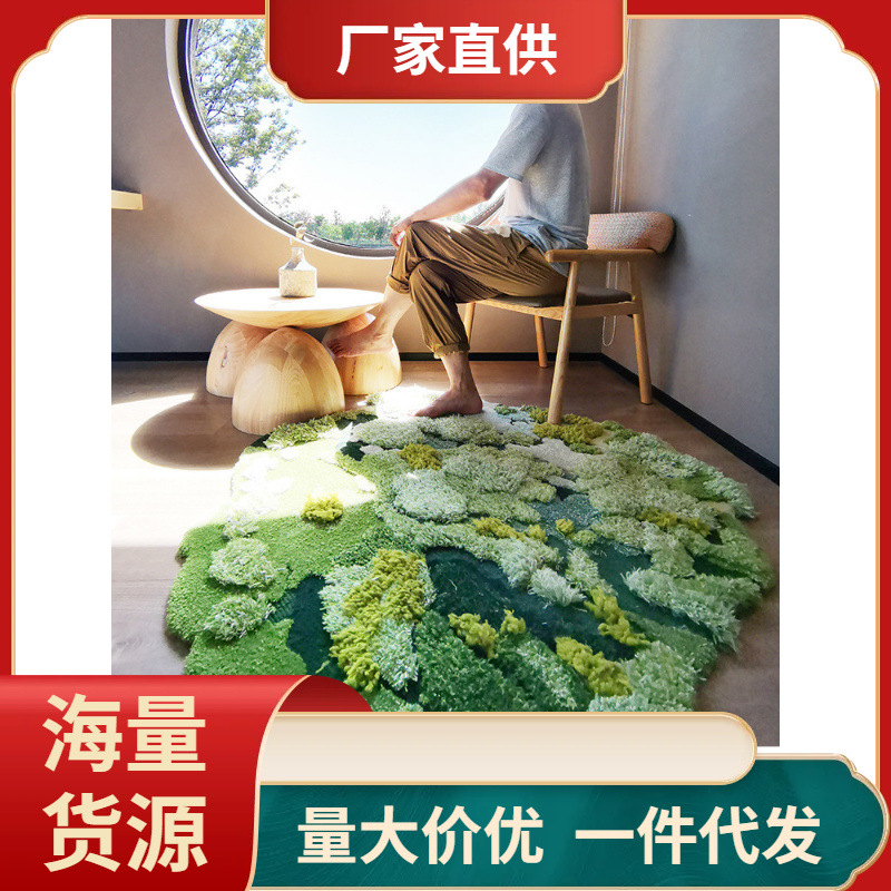 卸売り繊維【池】不規則絨毯手作りウール客間寝室ベッドサイド絨毯緑コケ芸術