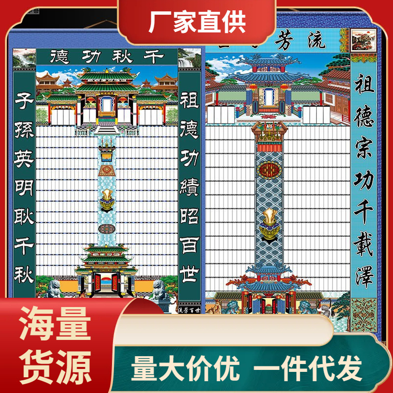 卸売り家堂軸子宗譜家庭用家系図掛け絵生地古い様式青連家堂掛け絵家系図系譜画