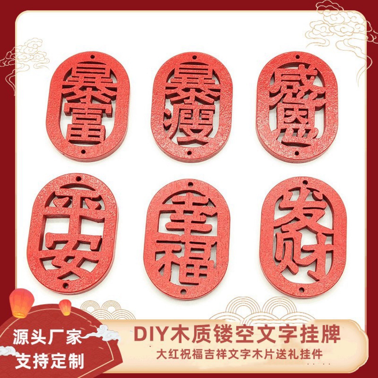 木の透かし彫りの祝福の文字の札の楕円体の大きい赤色の平安の吉祥の木の切れの個性のアクセサリのペンダントDIYの部品