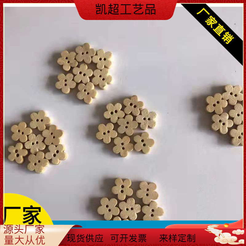 レーザー彫刻2穴梅花木バックルシリーズ純木質バックルdiy装飾バックル有眼四葉草原木