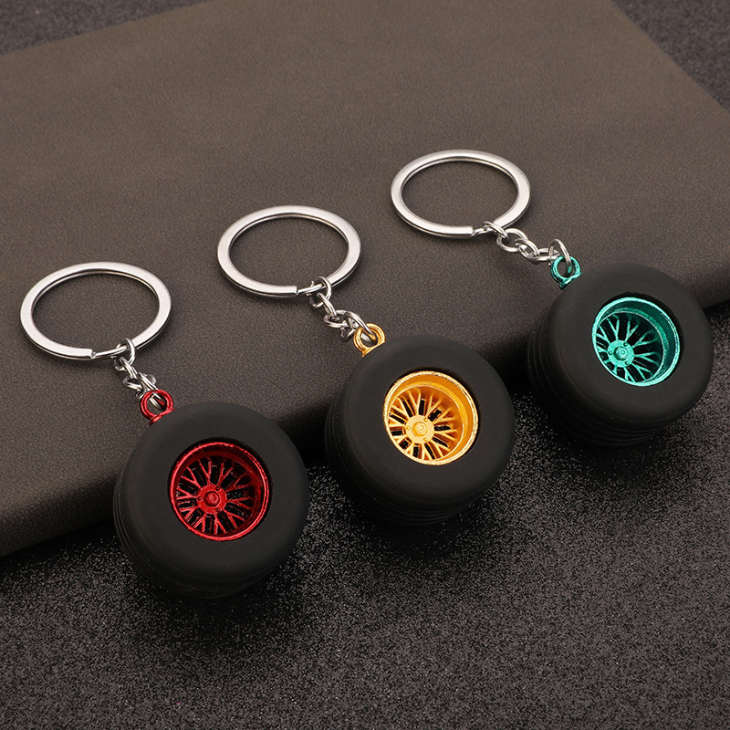 クリエイティブミニ自動車ハブキーホルダーpvcソフトタイヤ自動車キーホルダー部品ターボピストンペンダント