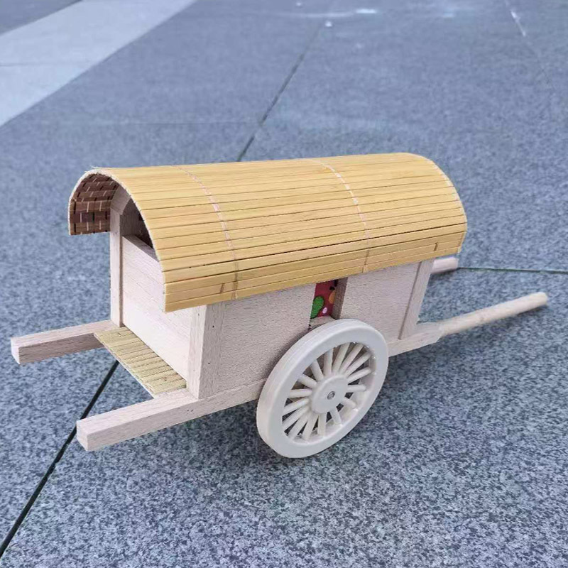 農家用品 木製ミニチュア屋根付き馬車 馬車模型 古代車装飾品