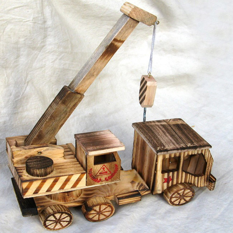 65746木製模型工事車大型クレーン木製少年プレゼント子供玩具クレーン車型