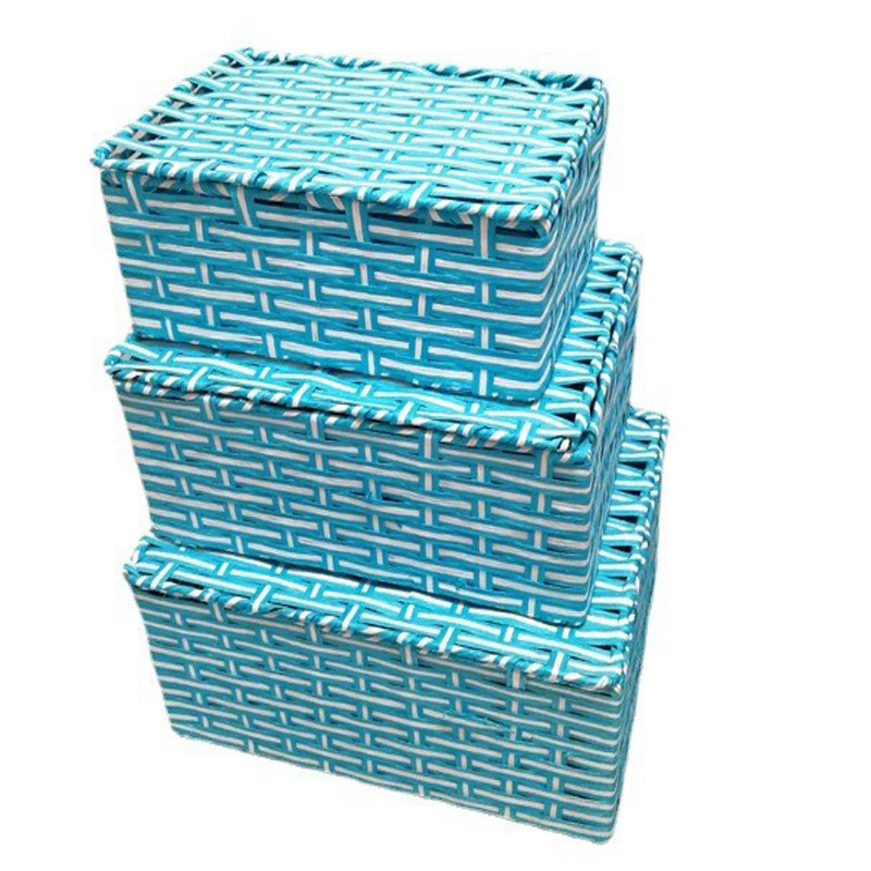 22510ペーパーロープ手编み収纳カゴカバー三个フタ付きブックファイルオフィス草编み収纳ケース