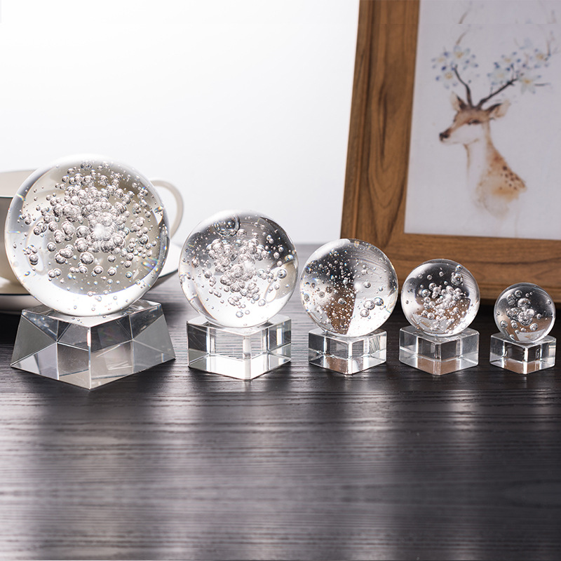 光面中空築山流水装飾水晶球事務デスクトップ置物工場1688ソース水晶気泡球