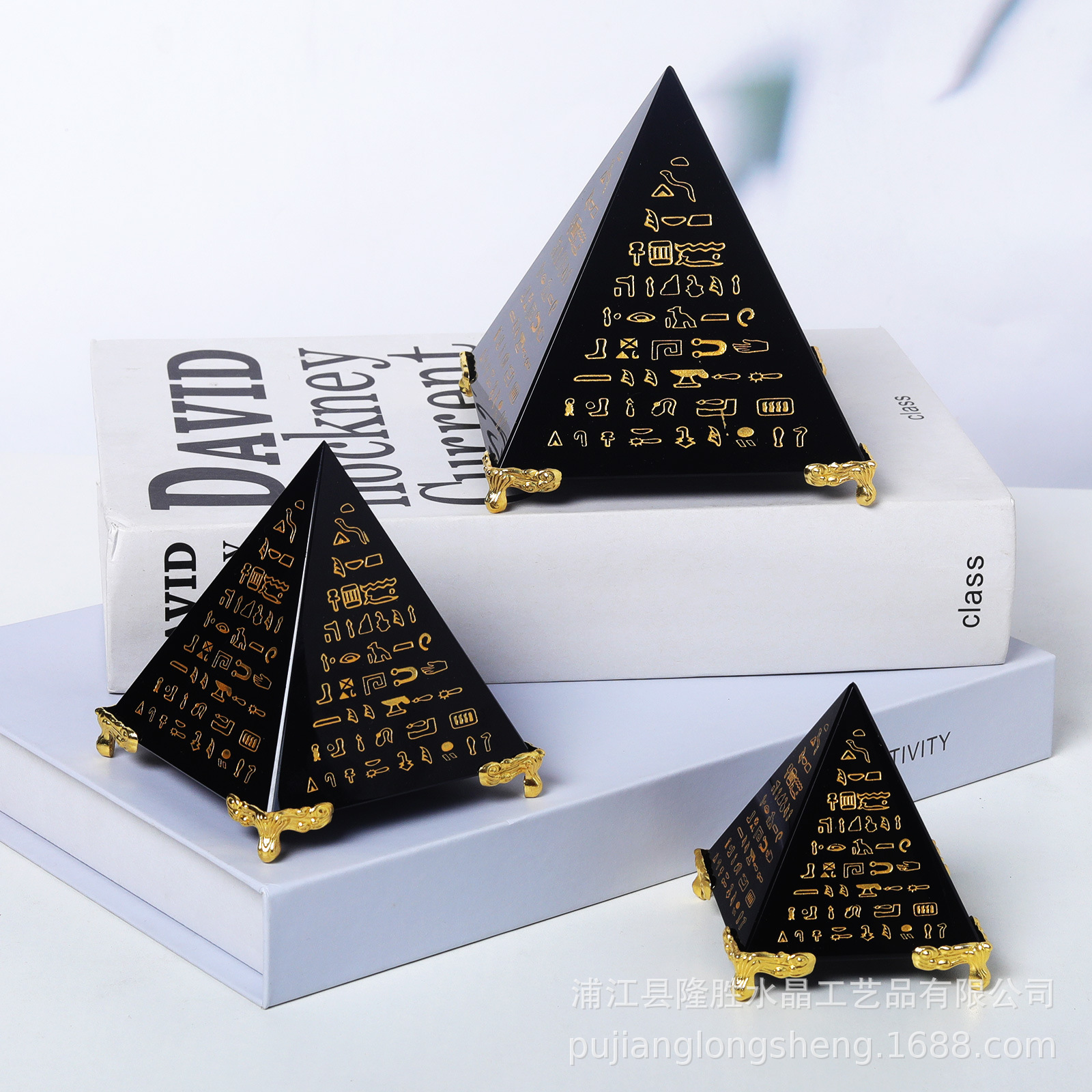シンプルで現代的なスタイルの中国式レトロな黒い経文の金色の台座のピラミッドの三角の角の形の屈折のテーブルの置物