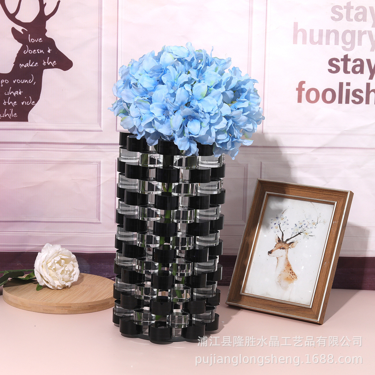 シンプルな北欧スタイルの白黒の緑のつなぎ合わせの電気めっきの置物の家の装飾の花器の円柱形の階段の花は花瓶を挿します。