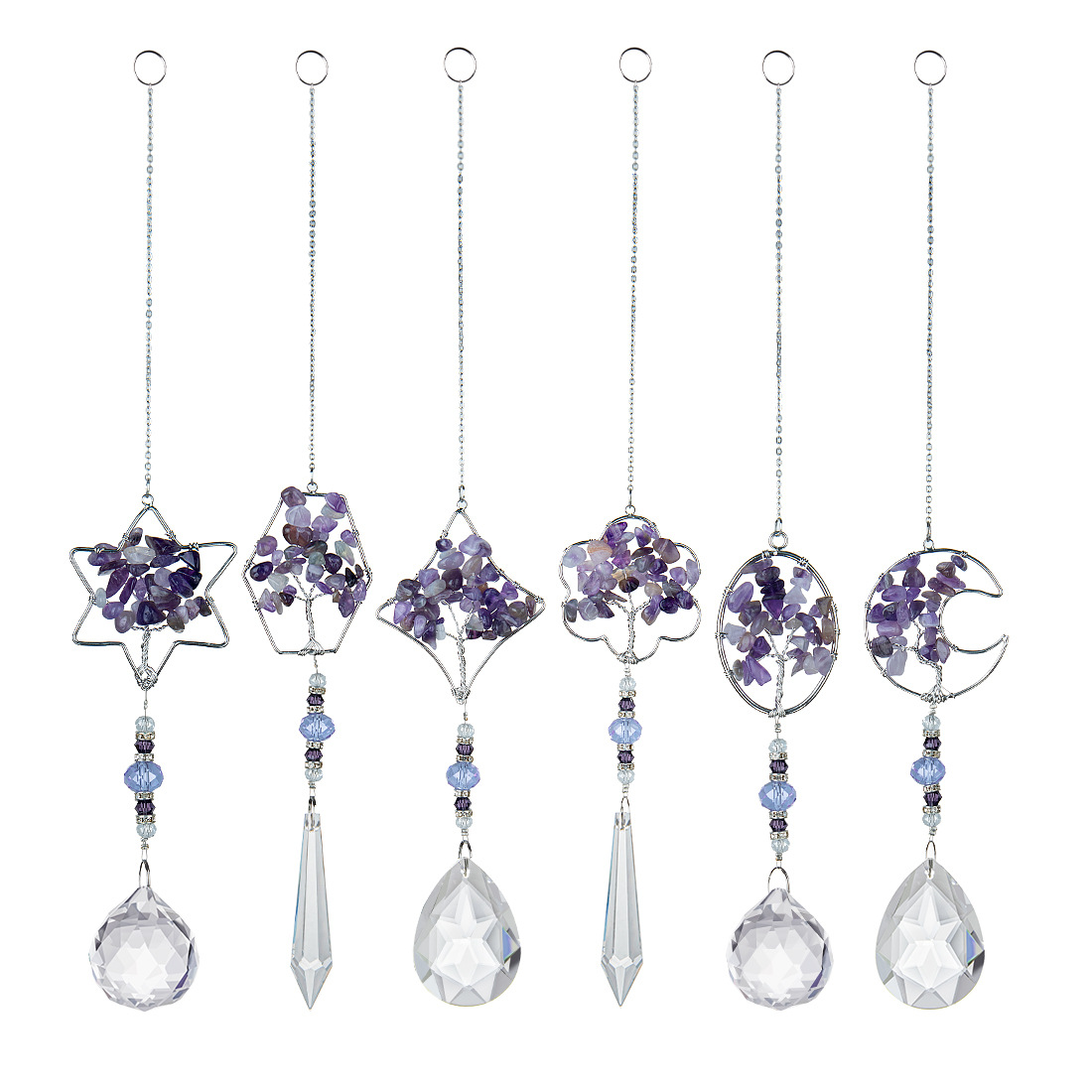 工場ソースdiy生命樹幾何形状紫粉砕石水晶カエデ灯装飾球尖珠水晶ペンダント