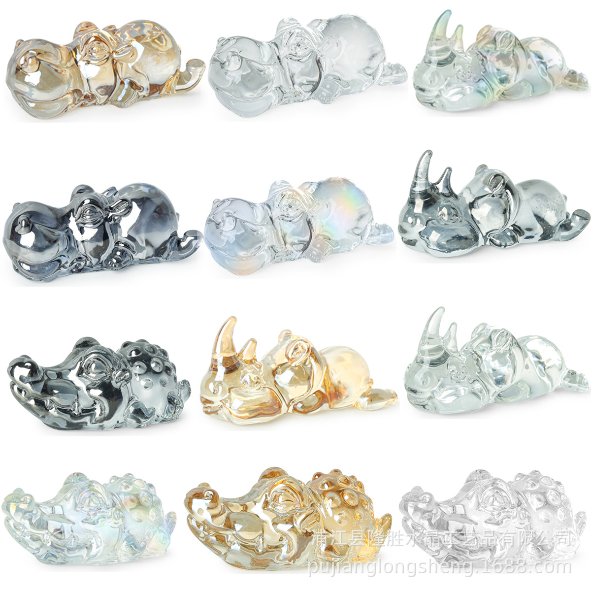 水晶工芸品のピンクの青は金の耳をなぞってうさぎにうつ伏せになります。