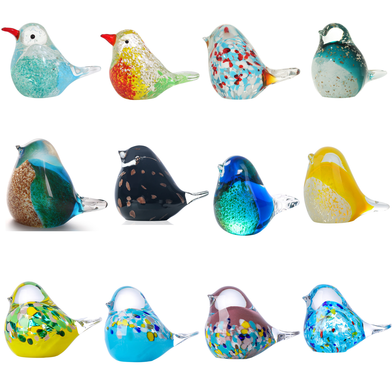 クロスボーダーの玄関のリビングルームのデスクトップの家庭用品のアニメの瑠璃のカラーの雪の白い点の小鳥の水晶の置物