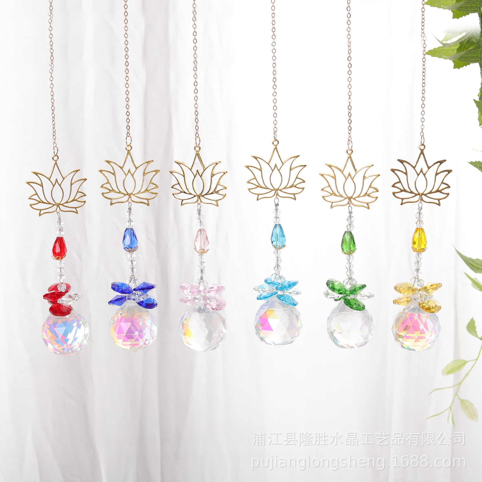 日光捕手園芸工芸品金色蓮水滴ランプ装飾球6点セットab彩ペンダント水晶ペンダント