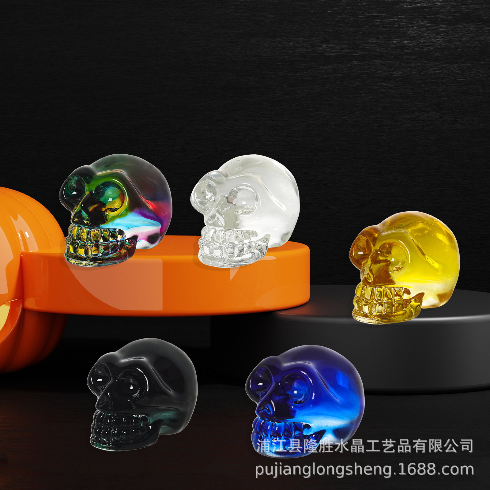 豪華なリビングルームのソフトな装飾の色とりどりのスカルの頭のハロウィーンのクリスマスの装飾の瑠璃の工芸品のデスクトップの水晶の置物