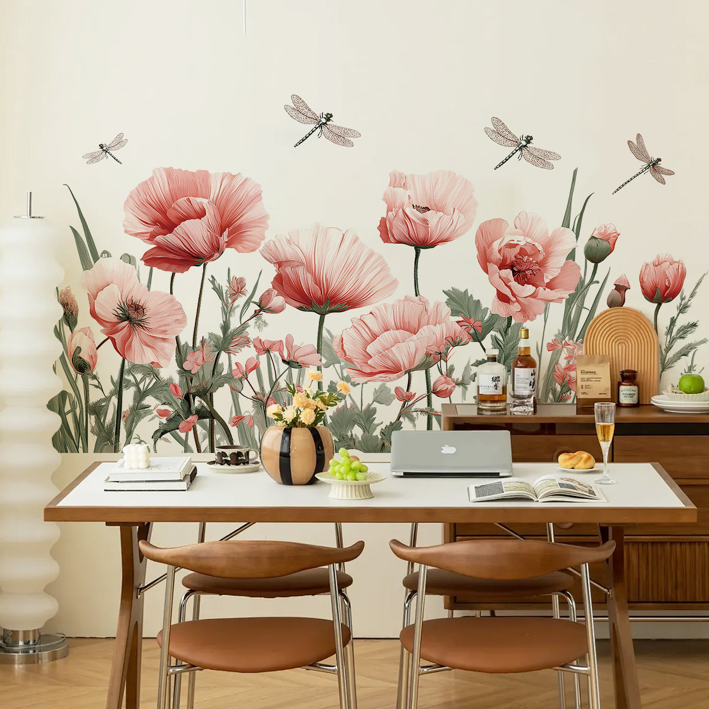 クロスボーダー新しいピンクの花トンボウォールステッカーリビングルーム寝室ホーム背景装飾壁取り外し可能なステッカー