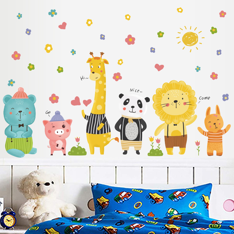 XY9025 子供部屋漫画動物ステッカー幼稚園環境創造的な壁の装飾壁紙カスタム自己粘着卸売