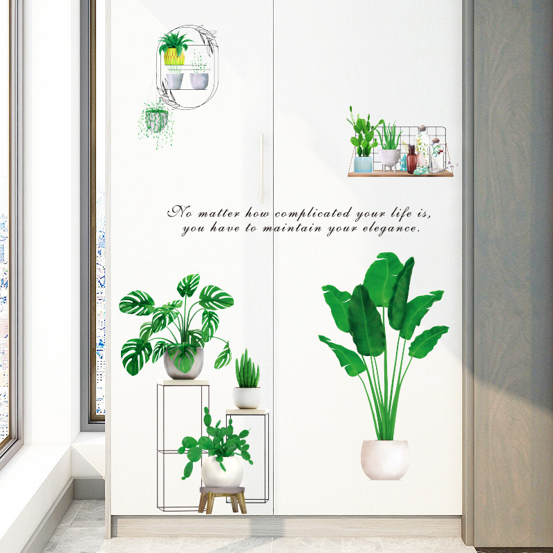 メーカー清新緑植盆栽壁貼りドア玄関寝室テレビ背景装飾シールhtシリーズ