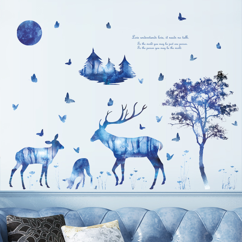 Hm92065ブルーファンタジー森鹿北欧モダンリビングお风吕玄関ダイニングテレビ壁饰りウォールステッカー