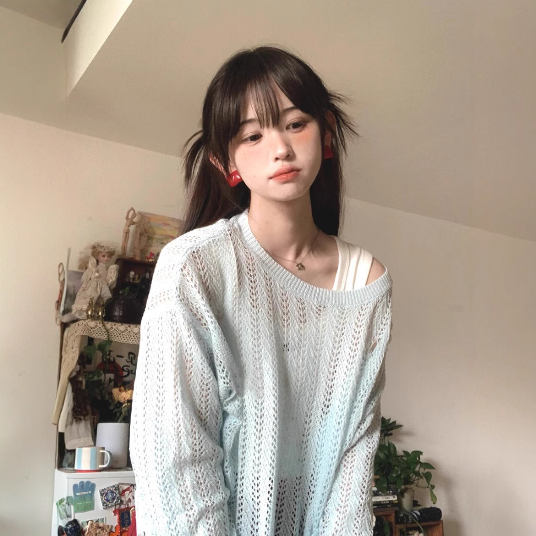 怠惰なデザイン感の透かし編み物女性の夏のゆるい高級感の日焼け止めとストラップの上着