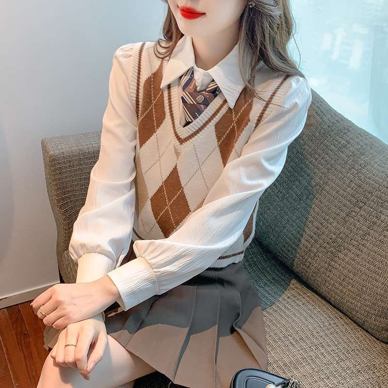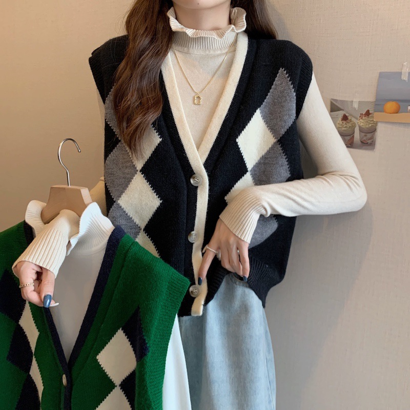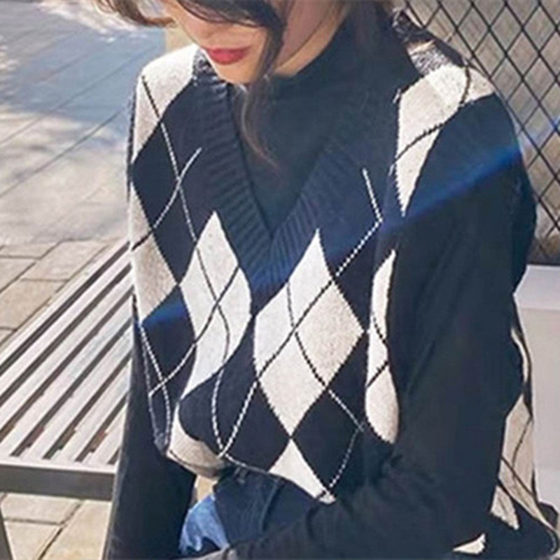 チェッカーボード柄セーター レディース ベスト 2025年秋冬新作 アウター インナー ニットセーター 秋服トップス