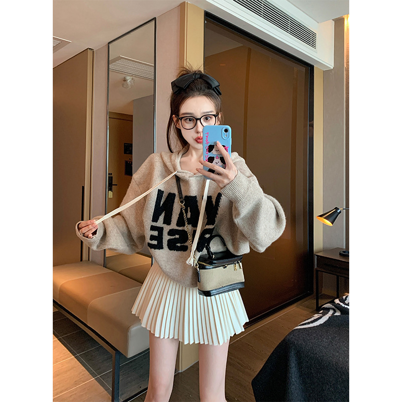 カーキ色のフード付きセーター女性2024新秋冬厚さの小さい背の短いプルオーバー