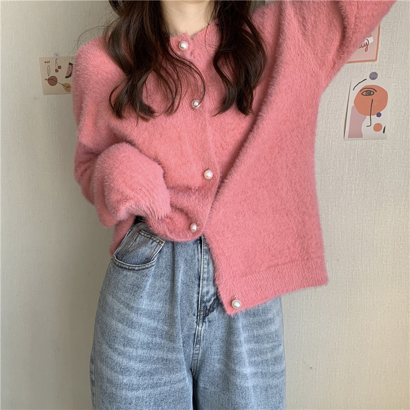 イミテーションミンクのような柔らかなセーターカーディガン、秋冬新作、韓国風、2025年、長袖、ラウンドネック、白ニットジャケット