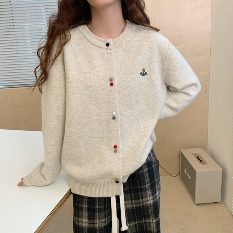 刺繍入りニットカーディガン レディース 2025春秋新作 シングルボタン ラウンドネック 長袖セーターコート ソフトで柔らかい韓国風トップス
