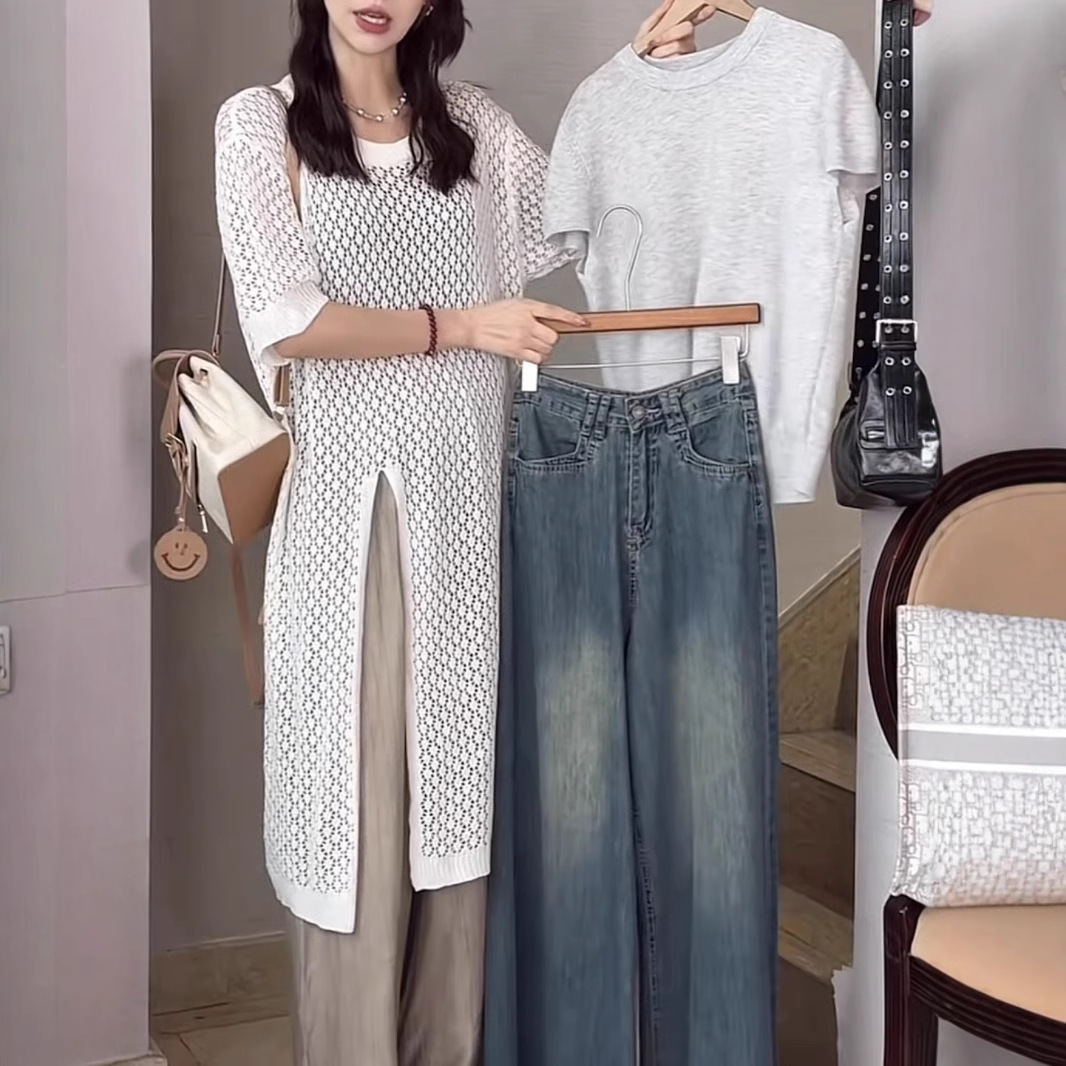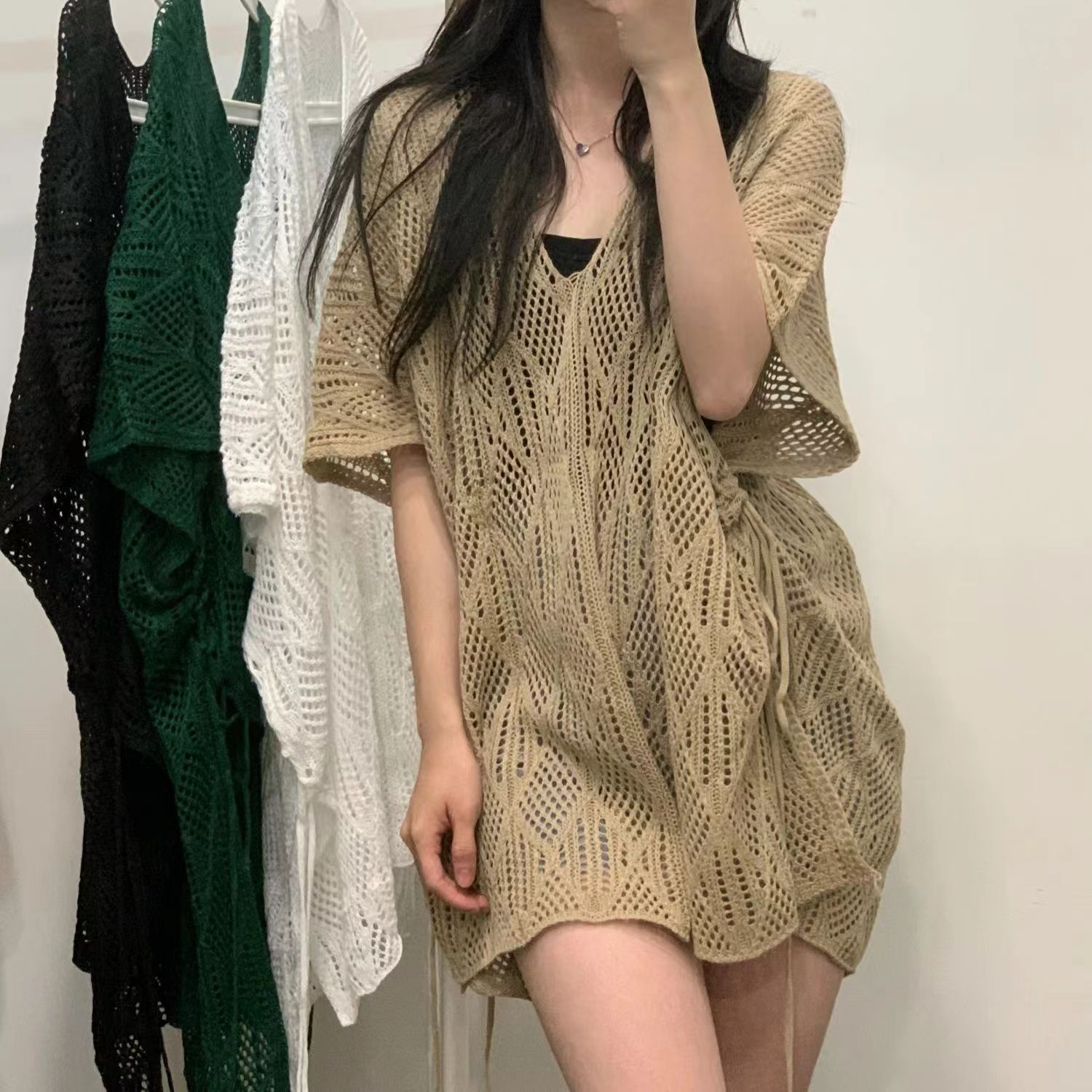 2025年の新型夏の婦人服の薄紗のニットの上着はゆったりしています。