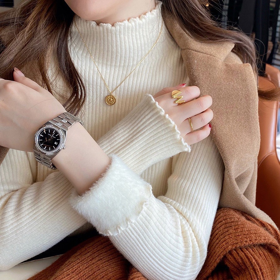 冬の2023年の新型の半高襟の女性の中に一体の綿毛のセーターの女性の秋冬の修身とベルベットの厚い底を着ます。