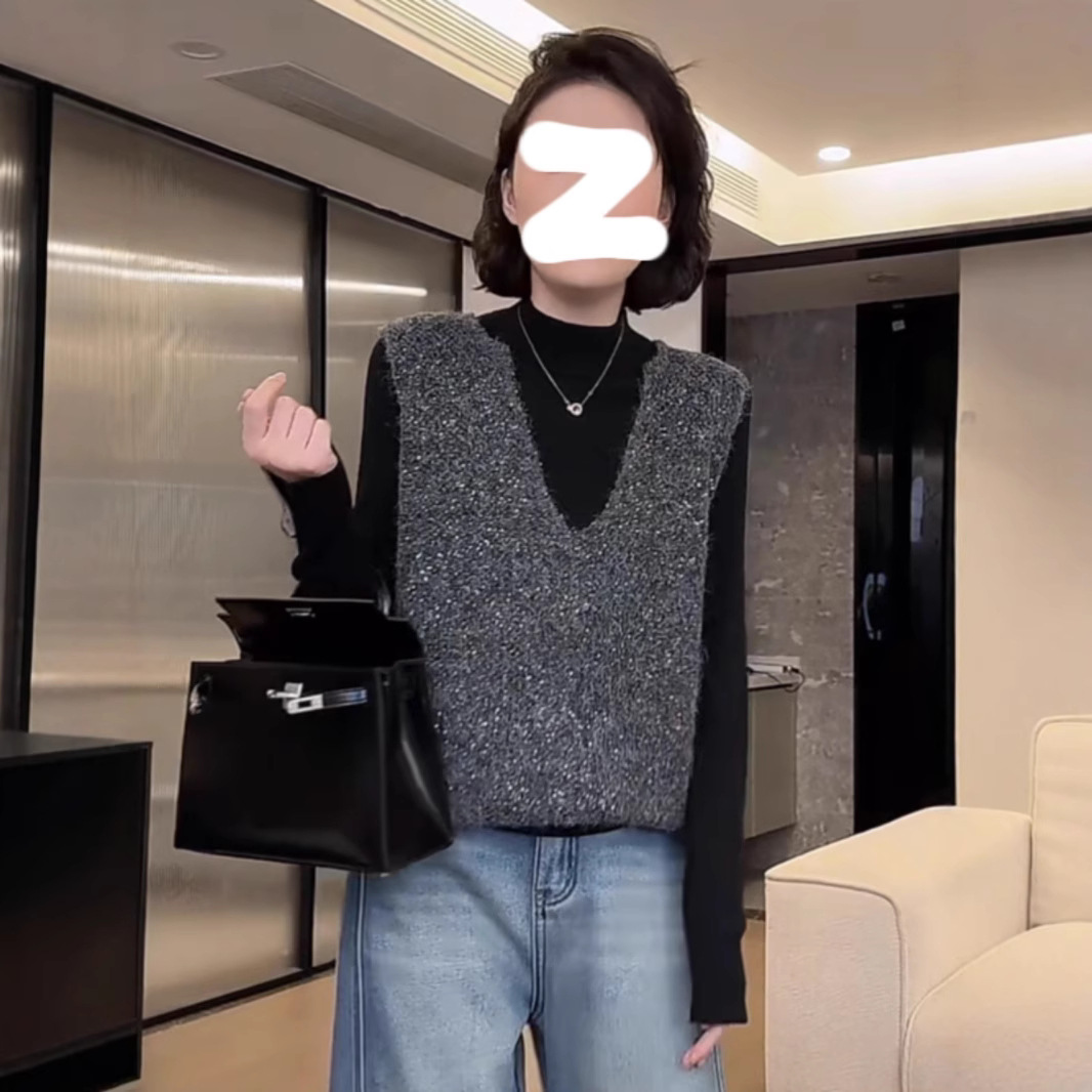 スパンコールベストベストベストベストベスト2025春ビッグサイズ太ったMM純色ノースリーブvネック洋風ファッションニットセーター