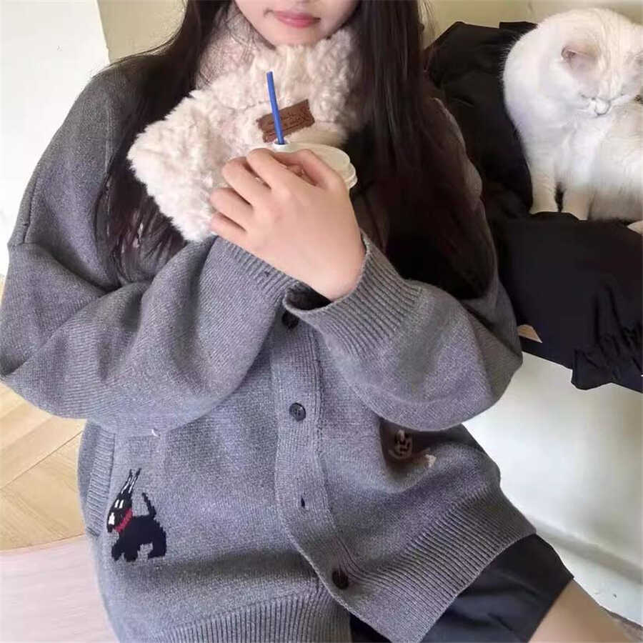 2024秋冬デザイン感グレーの子犬のセーターのコート