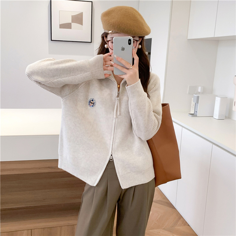 フレンチレイジースタイルミッドレングスニットセータージャケット女性用2025秋冬新作ルーズアウターニットトップ