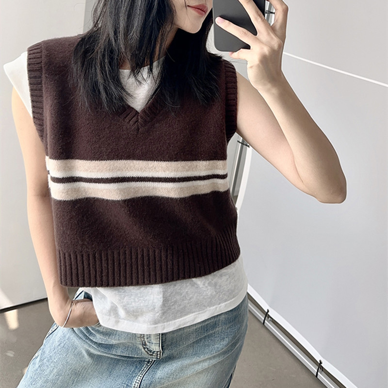 Vネックニットベストレディース2024秋冬新作カーディガン重ね着セーターノースリーブベストベストベストベストベストベスト