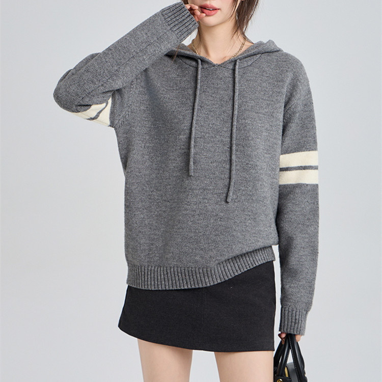 帽子付きのニットカーディガンのコートの女性秋冬2024の新しいゆるい女性のニットセーター長袖の帽子付きの外付け