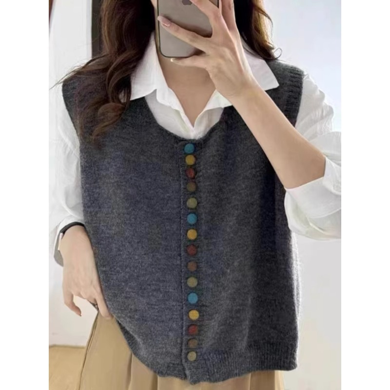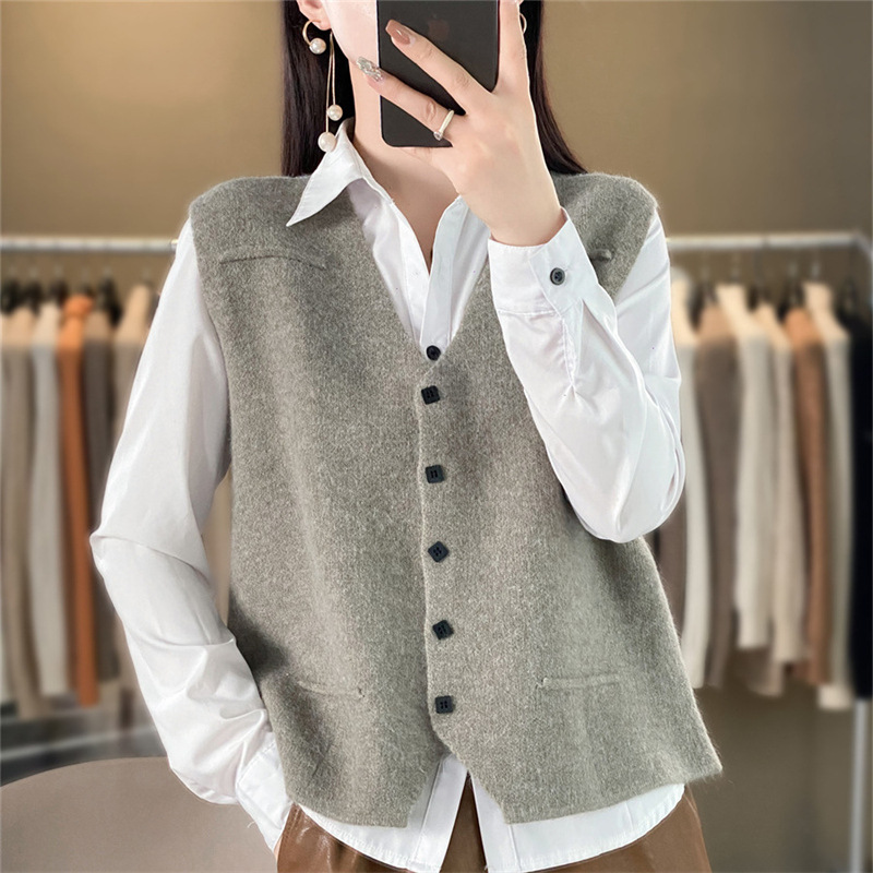 馬甲ニットベスト女性秋冬セーター馬クリップ2024秋冬新作百合重ね着小カン肩vネック上着