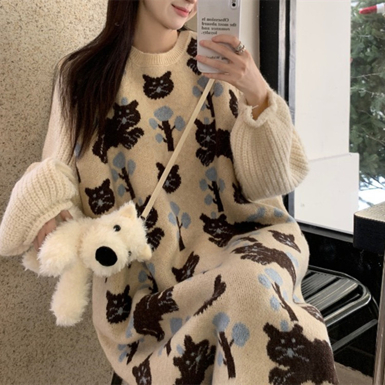 大きいサイズのアニメの子猫のジャカードのセーターのベストの馬甲の秋冬の新型の太っているmmはやせている年齢のニットの馬甲を現します。