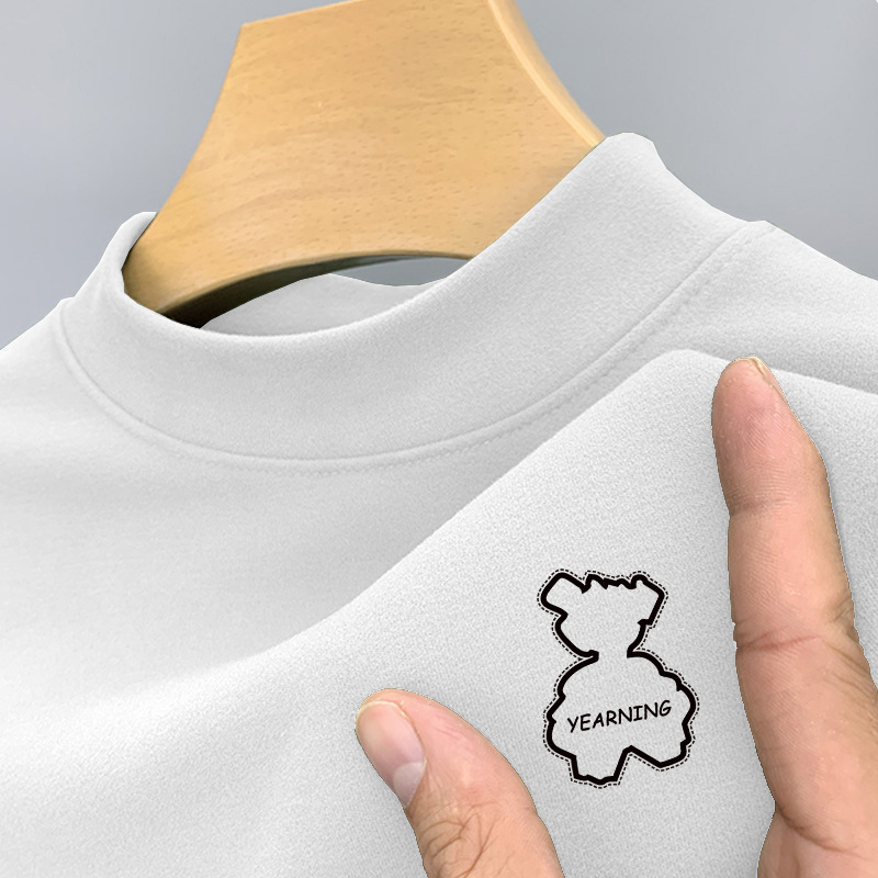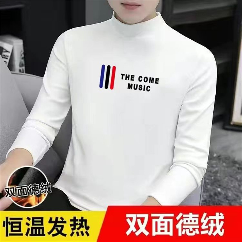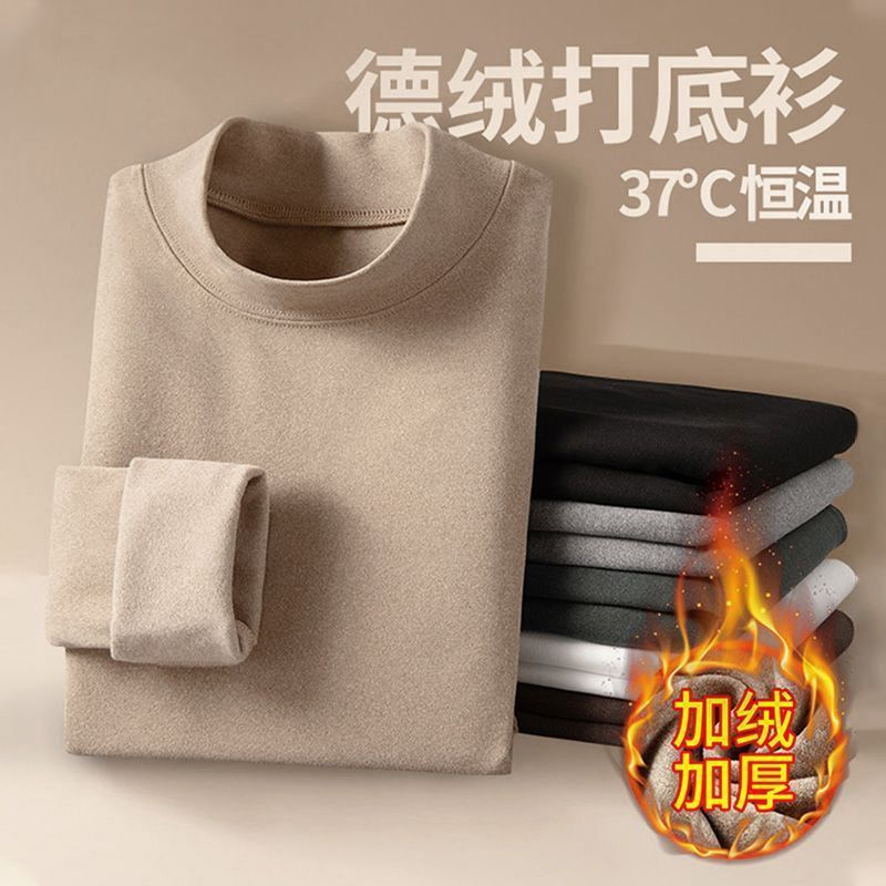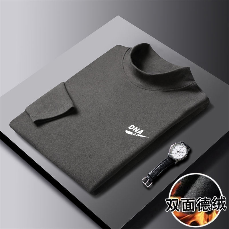 200g両面徳絨毛半高襟長袖tシャツ男性秋冬新作ベルベット保温中襟シャツ上着