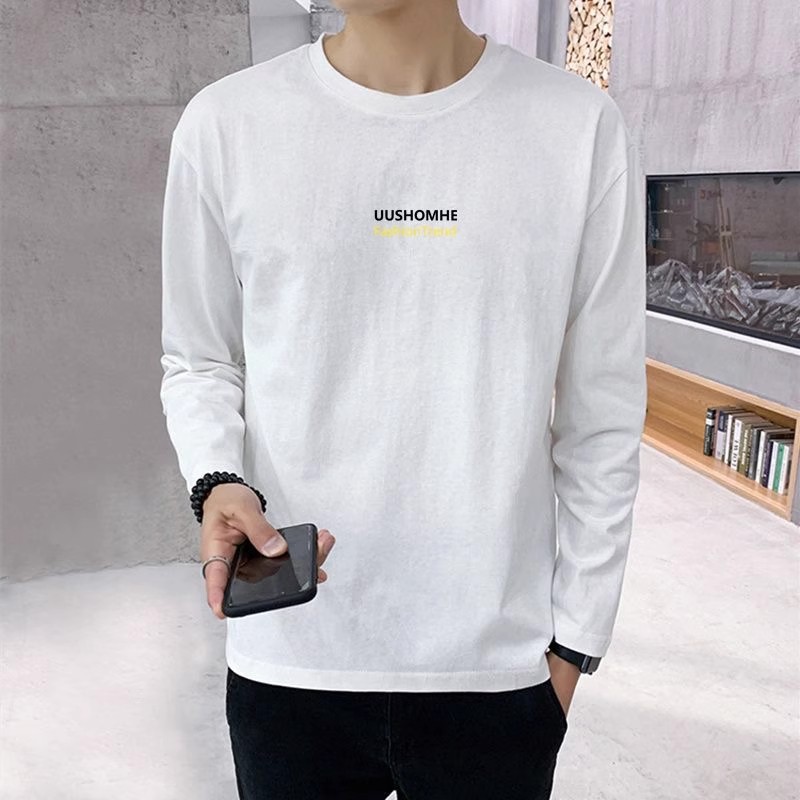 男性の秋の肌にキスする牛乳の糸は薄いタイプのtシャツの長袖の青年のファッションのカジュアルな百合の底の上着を修理します。
