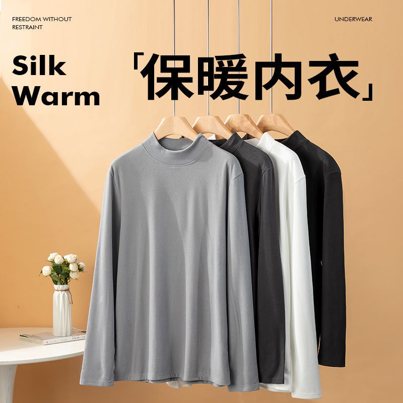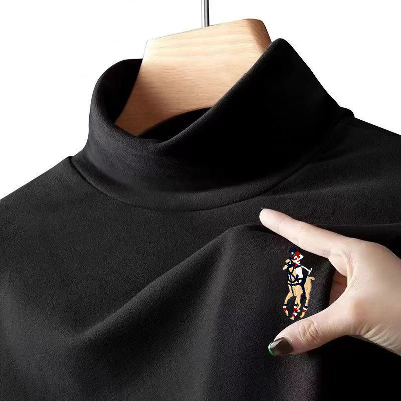 2024新型徳絨毛恒温保温下着とベルベットの中に男性のシャツの半高襟のガーディアン長袖tシャツを着ている