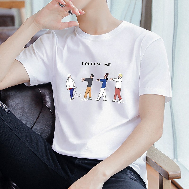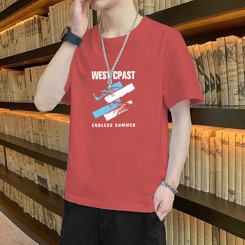 半袖Tシャツ メンズ 秋 韓国風 スリムフィット トレンドプリント 薄手 丸首 インス風 マーケット/屋台販売用