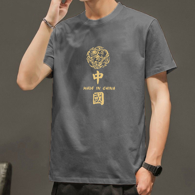 丸首半袖tシャツ男性国潮要素薄いボディシャツファッション短いファッションファッション