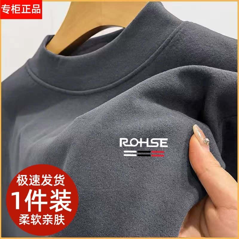 秋冬徳絨毛長袖tシャツ高街保温快適下着男性防寒半高襟プリントシャツ