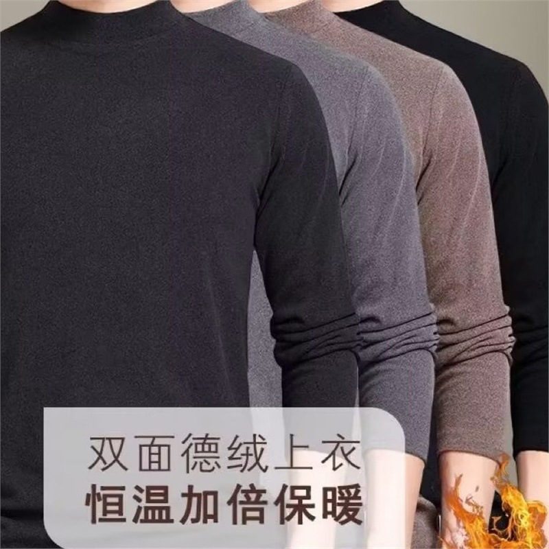 徳パイル恒温自己発熱保温下着とベルベットの厚い中に男性のシャツの半高襟長袖tシャツの秋衣を着る