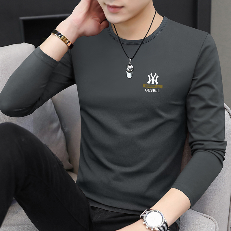秋の新型長袖tシャツ男性のファッション丸首修身tシャツの中に服を着て学生の底のシャツを着ます。