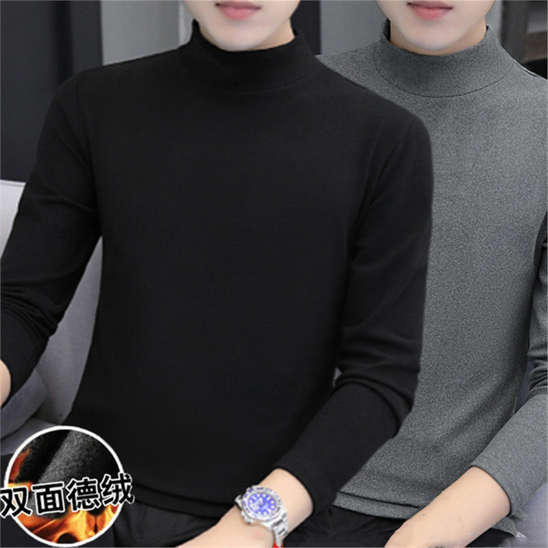 自己発熱徳絨毛高襟男性恒温保温下着秋冬とベルベットの厚い長袖tシャツの中の高襟