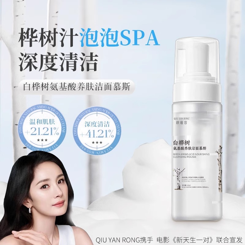 Qiuyanrong 白樺アミノ酸肌栄養クレンジングムース保湿保湿クレンジング肌ディープクレンジングオイルコントロール