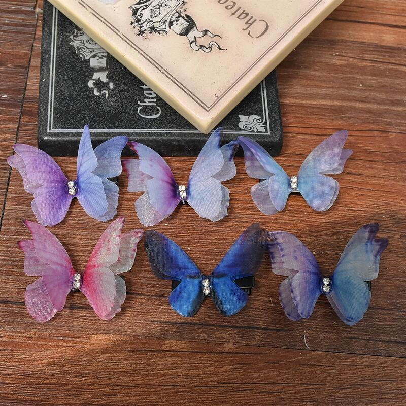 チュール模擬蝶ヘアピンブライダルヘアピン古代スタイルペアクリップサイドクリップ漢服前髪クリップ写真ヘアアクセサリー