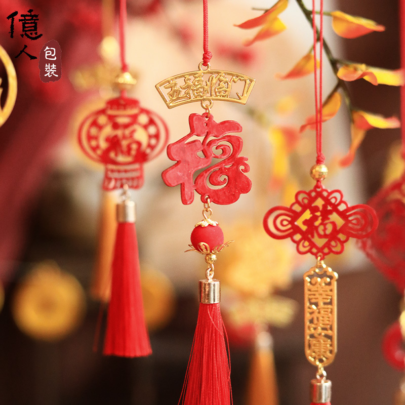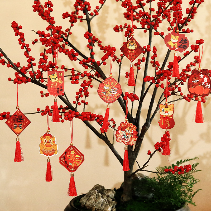 新年と春祭りの盆栽緑の植物鉢植え装飾ペンダント新築祝い屋内と屋外の木の赤い提灯新年の祝福ペンダント
