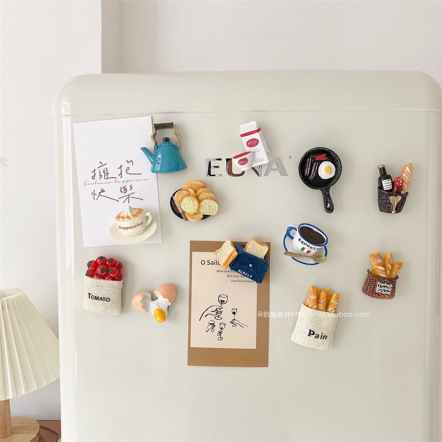 インスタイル冷蔵庫ステッカー 3D 立体クリエイティブ磁気ステッカーシミュレーション食品パンメッセージステッカーマグネット写真背景